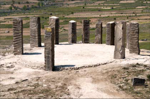 In Time and Space, from Rogerss global Rhythms of Life project (on seven continents), we are confronted not only with this dynamism, but further with an individual projection of time onto our personal reality in order to understand experience. Surely it appears true that the construct of time is our own whether or not we accept that a noumenal experience may differ from a phenomenal one—our intellect can most certainly contradict the senses when it comes to the perception of time. The basalt granite structures are presaged by the Neolithic tradition of ceremonial or measurement monuments in the form of henges, colonnades, and arches. They bring to mind the enduring presence and timelessness of Stonehenge or the Callandish Standing Stones of Scotland (Fig. 2).